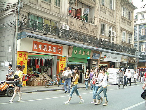 洋船爭出是官商,十字門開向兩洋;五絲八絲廣緞好,銀錢堆滿十三行。 現在的人民南路和十三行路上,是廣州有名的服裝批發城。而這邊就是古西關地區的十三行。其實十三行路一點也不寬,和通化街夜市差不多,又窄有小小的馬路其實他和廣州市普通的街道一樣,它一點也不顯眼,但是呢,這一帶曾是盛極一時的清代中國對外貿易的中心。在清朝年間,提起十三行,沒有人不知道它的輝煌。而現在呢,他依然延續了古代的光榮,成堆成堆的衣服向外擴張。